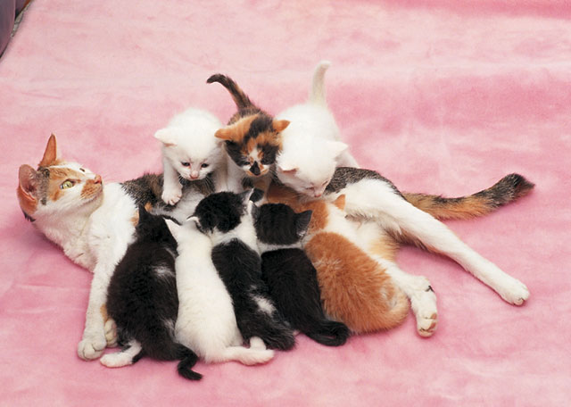 【日本猫(我が家で生まれました)】我が家で生まれた猫達です。子猫もこれくらいに成長すると、オッパイの時間も少なくなり、離乳食へと移行します。動物と共に暮らしていると、彼らの様々な生活の場面が撮影できます。