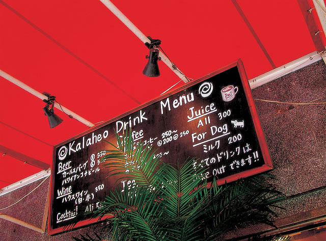 時々出かけるオープンキッチンのメニューボードに光が当たって、赤い屋根とのバランスが面白いから撮ってみた。