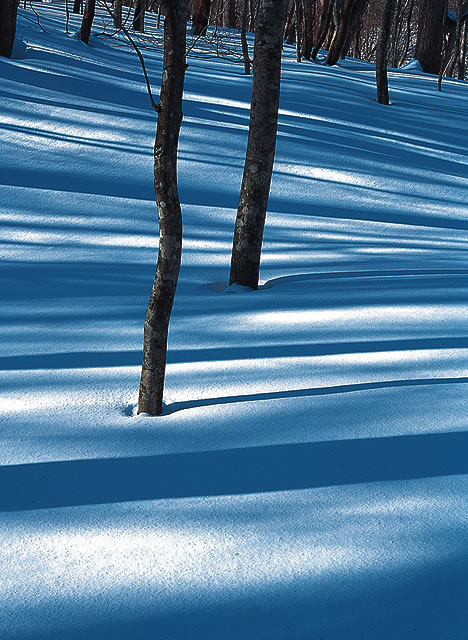 【森】この撮影で注意したことは、自分の足跡がつかないように遠回りし、予定したポジションに行ったことだ。無造作に歩くと良いアングルを無駄にしてしまう。予測して撮影する癖をつけることだ。