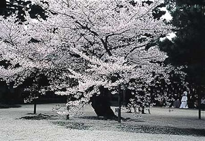 勝博様 (2)京都府左京区平安神宮境内社務所横 (3)4月上旬 午前中 (4)平安神宮神苑の庭園にある紅しだれ桜も大変美しい。