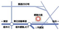(5)東北自動車道栃木IC→鍋山街道を北西へ約4km→国道293号を右折→宇都宮方面へ約4km→大柿十字路を右折→約1.5kmで東北自動車道側道を右折→東北自動車道沿約2km |
