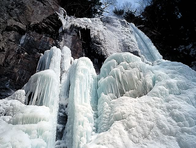 冬の造形、氷瀑はいろいろな顔を持っている。そんな場所を訪れるのはひそかな楽しみでもある。