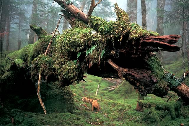 森の中を散策すると、苔むした倒木に出会うことがある。これも自然界の営みのひとつである。
