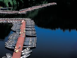 【夏日】風もない夏の暑い日、釣り人待ちの白いボートがブルーと緑の中に、とても強く自分を主張していた。
