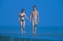 【若輝】8月の午後の陽に輝く二人を防波堤の上でとらえた。二人が気づき、右手で撮るよと合図を送って、輝く表情を逃さないようにシャッターを押した。海色が二人を優しく包んで、堂々とした彼と、ややはにかむ彼女を祝福していた。