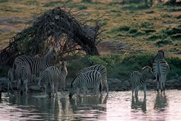 アフリカ大陸には、何種類かのシマウマが生息しているが、種類によって少しづつ縞模様が違っている。夕刻のひとときバーチャルシマウマが水場を訪れて、喉の渇きを癒している。