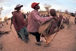 ブッシュマンの部落を訪れたとき、夕方に村人が集まってきて焚き火を囲んで円陣を作り、ひとりでに踊りだした。