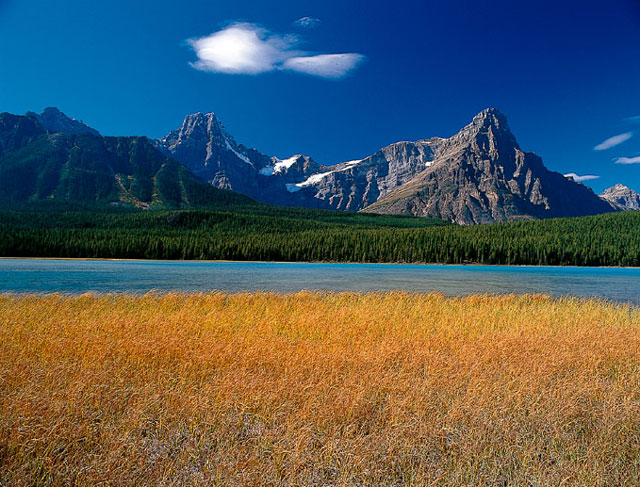 【秋のカナディアンロッキー】すっきりと青く抜けたカナダの空。遠景もキリリと立ち上がって、湿度が全く感じられない。そんな光景を、PLフィルタ−を使い、フィルムで美しく捉えてやる。