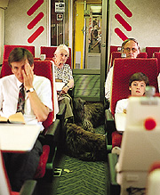 【アイリッシュ・ウルフハウンド】ドッグショーが終わり、帰りのインターシティー(電車)に老婦人が2頭のウルフハウンドを連れて乗り込んで来たのにはビックリしました。ロンドンのキングクロス駅で当たり前に下車しました。