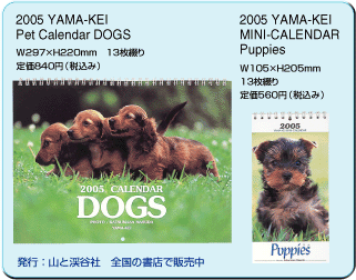 今回、偶然に起きたことなのですが、出版社発行のカレンダーとフィルムメーカー作成のカレンダーの両方とも、うちで産まれた同じ子犬の写真が選ばれたんです。もちろんカットは別のものですが。