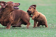 【ダックスフンド(スタンダード)】ミニチュアのダックスフンドが注目される前から、スタンダードを飼っています。力強く、頑固な性格が好きです。我が家で生まれ40日くらいです。
