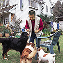 それぞれに習性や性格が違いますので、そこを見極めてあげる必要があります。遊ばせ方や接し方などにも気をつかいます。先ほどの(巻頭ページの先生と犬たちとの写真)ように何種類もの犬を一緒に撮影する場合でも、どのような組み合わせでもできるわけではないんです。