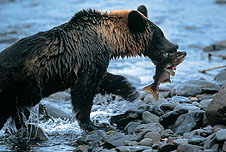 ヒグマが歩く大地、知床。いとも簡単にサケをとらえる瞬間をとらえた。