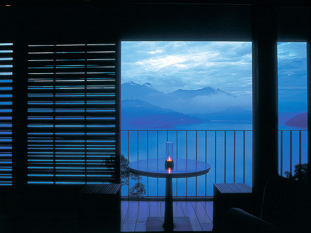 湖底に眠っているような気持ちになる、瑠璃色の夜明け。心ゆくまで明潭の風光を堪能する。