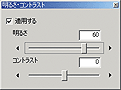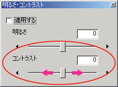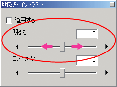 「明るさ」のスライダーを移動することで、画像を明るくしたり、暗くします。マイナス方向に動かせば、暗くなり、プラスにすれば明るくなります。