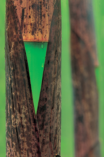 【真竹】開き始めた竹皮から覗かせる真竹の稈。とても瑞々しく、その緑の鮮やかさに感動する。