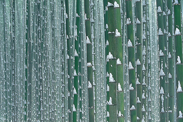 【雪竹】風雪にさらされた竹は、節に雪を積もらせて模様をつくる。