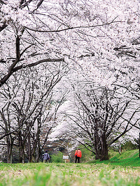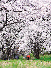 藤岡市の南に接する、多野郡鬼石町(おにしちょう)。その東の埼玉県境を流れる神流川(かんながわ)の河川敷の総合グラウンドには、川沿いに百数十メートルにも及ぶ桜並木が2列あり、見事な桜のトンネルを作っていました。
