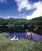 〈1〉市ノ瀬正夫様 〈2〉長野県山ノ内町志賀高原木戸池 〈3〉8月上旬 午前8時頃 〈4〉志賀高原にはいくつかの池があるが、この木戸池にはアヒルが飼われている。夏の高原をイメージするために、青空に雲を入れた。 〈5〉上信越自動車道信州中野ICから国道292号を志賀高原方面へ車で約40分。