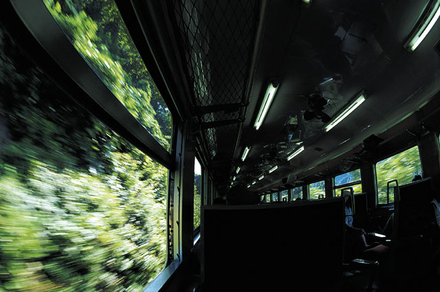 【夏】冷房のない車内。窓からの風が心地よい。魚眼レンズをなるべく歪まないように使って、窓を大きく取り入れて見た。