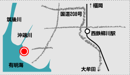 干潮がおすすめ。漁の“くも手”は10個ほどあり、あらゆる角度から写してみるのも面白い。“くも手”による漁の最盛期は春先か寒くなる頃と聞いており、その時期は漁師も被写体によいのでは。 〈5〉西鉄柳川駅下車、タクシーで約15分。