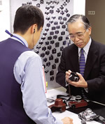 取材当日も早速、気になるカメラを見つけて、店のスタッフとのカメラ談義に花が咲いていました。 |