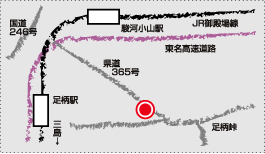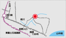 (5)中央自動車道河口湖ICから国道138号線を山中湖方面へ車で10分。忍野村入口交差点を左折しお宮橋まで5分