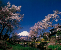 〈1)成岡芳夫様 (2)山梨県忍野村忍草(お宮橋より下流一つ目の橋付近) (3)4月下旬 午前7時頃 (4)4月下旬とはいえ、忍野村の朝は冷え込むので、防寒対策も用意。桜の開花状況は事前に観光協会等で問い合わせたい。