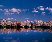 〈1)松坂美千代様 (2)長野県須坂市臥竜公園 (3)4月下旬 午前10時までに (4)北信五岳に朝日が当たっている10時くらいまでに撮影が終わるように。山と桜が横一直線になってしまうので、山の上の雲と水面に映る雲で上下のバランスを考えて撮影を。