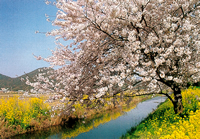 〈1)田中庸一様 (2)滋賀県近江八幡市北之庄町 水郷(3)4月中旬 午前9時頃(水郷巡りの舟も撮影するなら少し遅く) (4)四季折々の撮影ポイント多数。桜の咲く季節の水郷は葦原や咲き乱れる菜の花の中、小さな観光船が巡る。ひっそりと静まり返った風景は、風の少ない9時過ぎまでがベスト。
