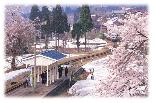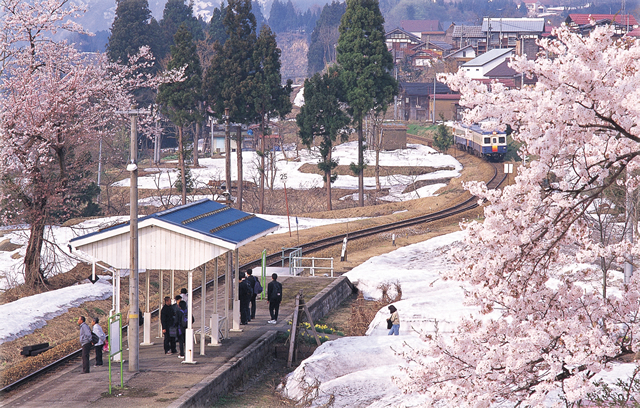 おそい春に待ちきれない桜満開の日…列車を待つ老夫婦の姿があった。学生が足取りも軽やかに集まってきた。