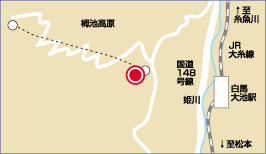(5)長野自動車道豊科ICを降り、国道147〜148号線を120分ほど北上。 |