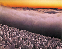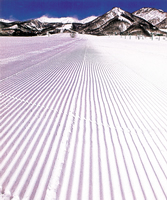 (1)田中利張様 (2)長野県北安曇郡小谷村 栂池高原スキー場 (3)1・2月 午前7時頃 (4)写真の線は、スキー場の圧雪機によってできるもののため、朝早い時間に撮影することが望ましい。遅くなると、スキーヤーによって線が乱されてしまう。