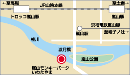 (5)京都駅前から京都バスで嵐山行約40分。または京福電鉄嵐山線、阪急嵐山線、嵐山駅を下車し徒歩数分。 |