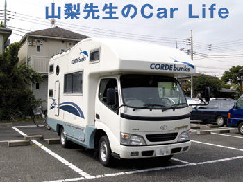 小型トラックをベースにオリジナルキャンピングカーを装着。運転席上部はベッドスペース。