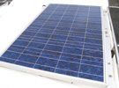 屋根にはソーラーパネルを装着。走行以外に必要な電気はこれで十分。。