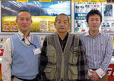 | 占部利幸さん(中央)と、カメラのキタムラ福岡/天神店・森谷プリントコーナーチーフ(右)と広田ストアマネージャー(左)。 |