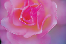 【メイクアップ】朝露に包まれたバラを、柔らかい光のもとで接写。ピントを花びらのエッジに合わせ、花の奥はソフトなボケ味で描写している。