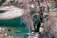 (1)杉浦弓雄様 (2)岐阜県関市洞戸 板取川 (3)4月下旬 (4)板取川は四季折々の素晴らしい景観が楽しめる。4月下旬は川岸の所々に山桜が咲いて、コバルトブルーの水の流れに映えている。 (5)東海北陸自動車道美濃ICを降り、長良川にかかる山崎大橋を渡って信号を右折。洞戸まで県道81号線を走る。洞戸事務所の信号を右折し国道256号線を北上。洞戸木作バス停より約1km。