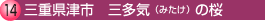 (1)勝亦道子様 (2)静岡県富士宮市杉田 (3)4月下旬〜5月上旬 午前9〜10時頃 (4)雨上がりの晴天の日が良い。個人の所有地なので許可を得、マナーを守って撮影してください。 (5)東名高速道富士ICより西富士道路へ。料金所を出て一つ目の信号を大渕方面へ右折し、その後2つ目の信号を左折。700m程走行して信号を右折し約1〜2分。