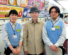 | 西川さん(中央)と、カメラのキタムラ京都/四条西院店・真壁(左)・渡辺(右)両スタッフ。 |