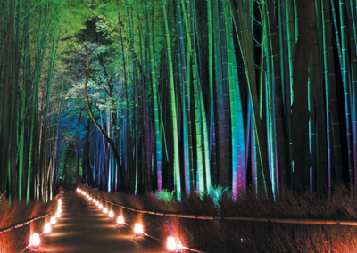 「幻想」“2005年嵐山花灯路”で嵯峨野の竹林ライトアップを長時間露光で撮影。