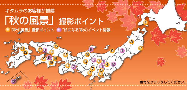 このページは、お客様からの「撮影ポイントを教えてほしい」という声に応えて企画しているページです。掲載されている撮影ポイント及び写真は、カメラのキタムラ・きむらのフォトコンテストに入賞された方々のご協力をいただきました。撮影者の方々からの撮影アドバイスも掲載していますので、参考にしてください。