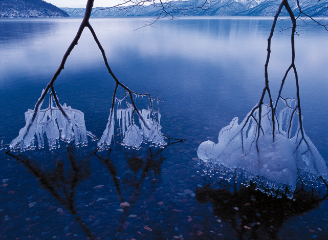 【静けさの中で】十和田湖では真冬になると「しぶき氷」という美しい造形美を見ることができます。静まり返る日没後の湖畔に1人立ち、静かにシャッターを切りました。私の大好きな時間です。