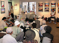 | 写真家井上清司先生を壇長とする寫壇太陽は、創立33周年の伝統を誇るシニアカメラクラブです。「同人展」は7年以上在籍する指導格の会員の作品展で、最終日は井上先生の講評に、会員及び一般のお客様も熱心に耳を傾けました。 |