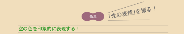 3 真っ暗になる前の、空に明るさが残っている 時間帯を狙う。 |