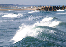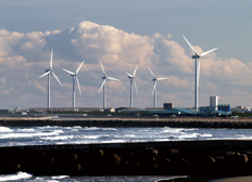 | 太平洋の荒波が打ち寄せる鹿島灘。その風を利用した風力発電が行なわれています。 |