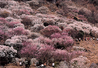 (1)鴨志田 章代様 (2)神奈川県足柄下郡湯河原町 幕山公園(湯河原梅林)(3)2月上旬〜3月上旬 (4)3月2日に撮影に行ったが、ちょうど満開ですばらしかった。傾斜地にあるため、見上げるアングルが可能で、とても奥行き感がある。(5)真鶴道路吉浜交差点を西へ車で約10分。電車の場合は東海道本線湯河原駅下車、バスで幕山公園まで。3/16まではバス臨時増発便あり。 |