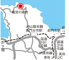 (1)小川照彦様 (2)山口県長門市油谷 北長門海岸国定公園 龍宮の潮吹 (3)4月下旬 午後1時頃 (4)1年を通じて撮影ができるポイント。ライトで鳥居を照らしての夜の撮影も面白い。(5)JR山陰本線長門古市駅下車、タクシーで約15分。中国自動車道 美祢ICから現地までは車で約1時間半。 |