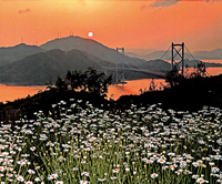 (1)村上ひさし様 (2)広島県尾道市因島大浜町 白滝フラワーライン途中 (3)5月上旬〜中旬 朝日が昇る前にスタンバイ (4)広角系レンズ、ストロボは用意した方が良い。除虫菊の開花は、1週間ほど前後するので、事前に確認が必要。(5)西瀬戸自動車道因島北ICを降り、県道367号線を左折、因島フラワーセンターに向かって右折、白滝フラワーラインの案内板を右折、車で約10分。 |